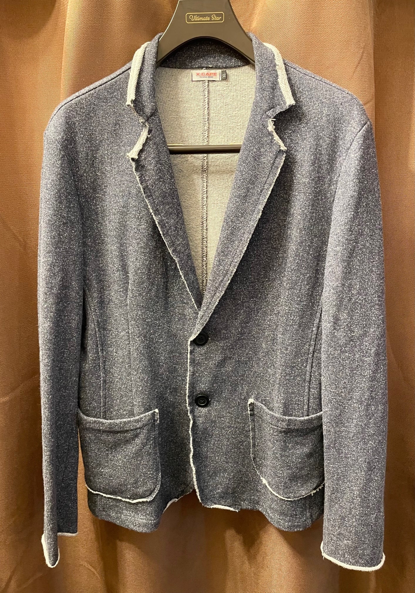 MADE IN ITALY製 X-CAPE ニットスウェットテーラードジャケット インディゴ XLサイズ