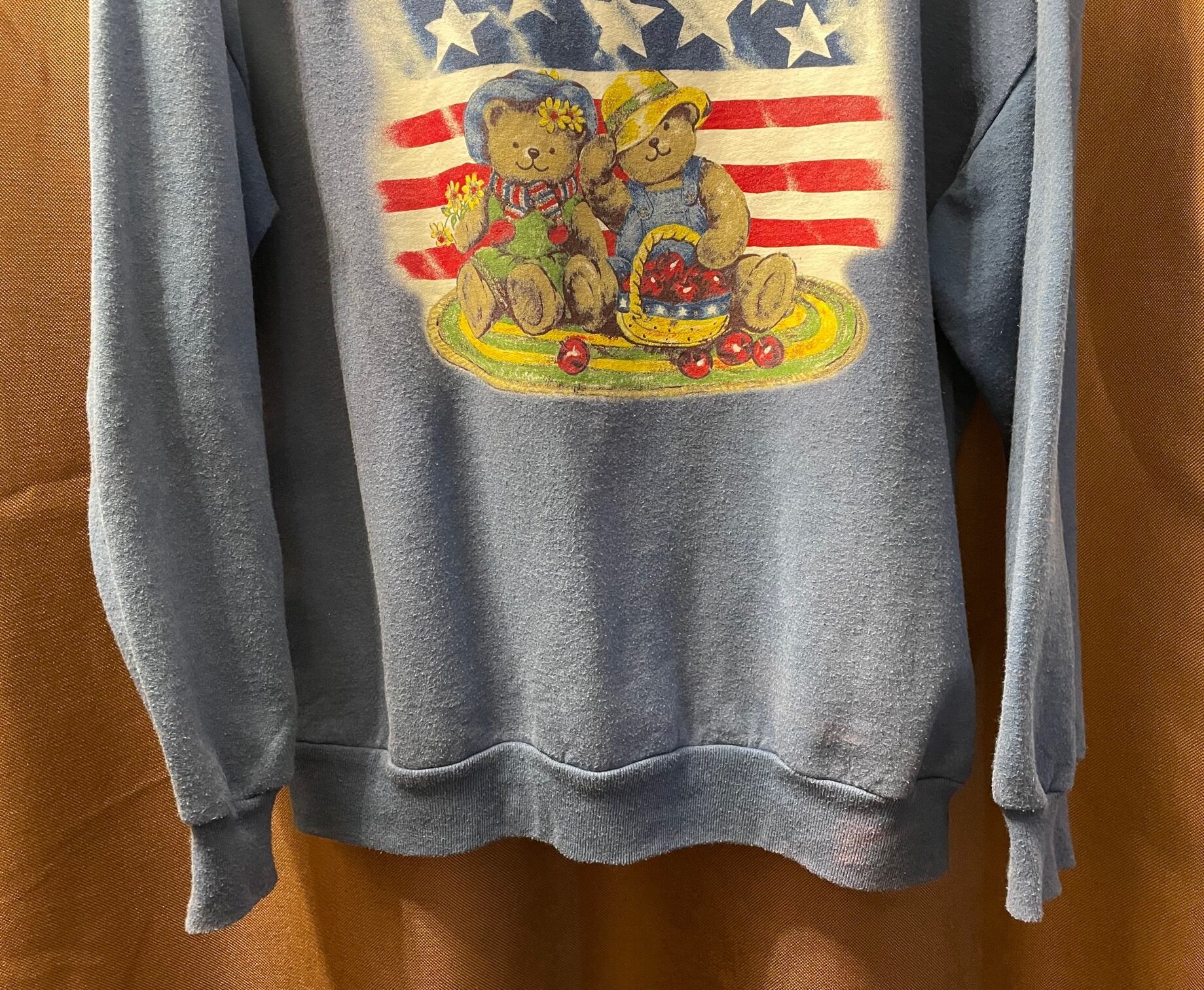 BASIC EDITIONS 熊星条旗プリントトレーナー ブルー Lサイズ