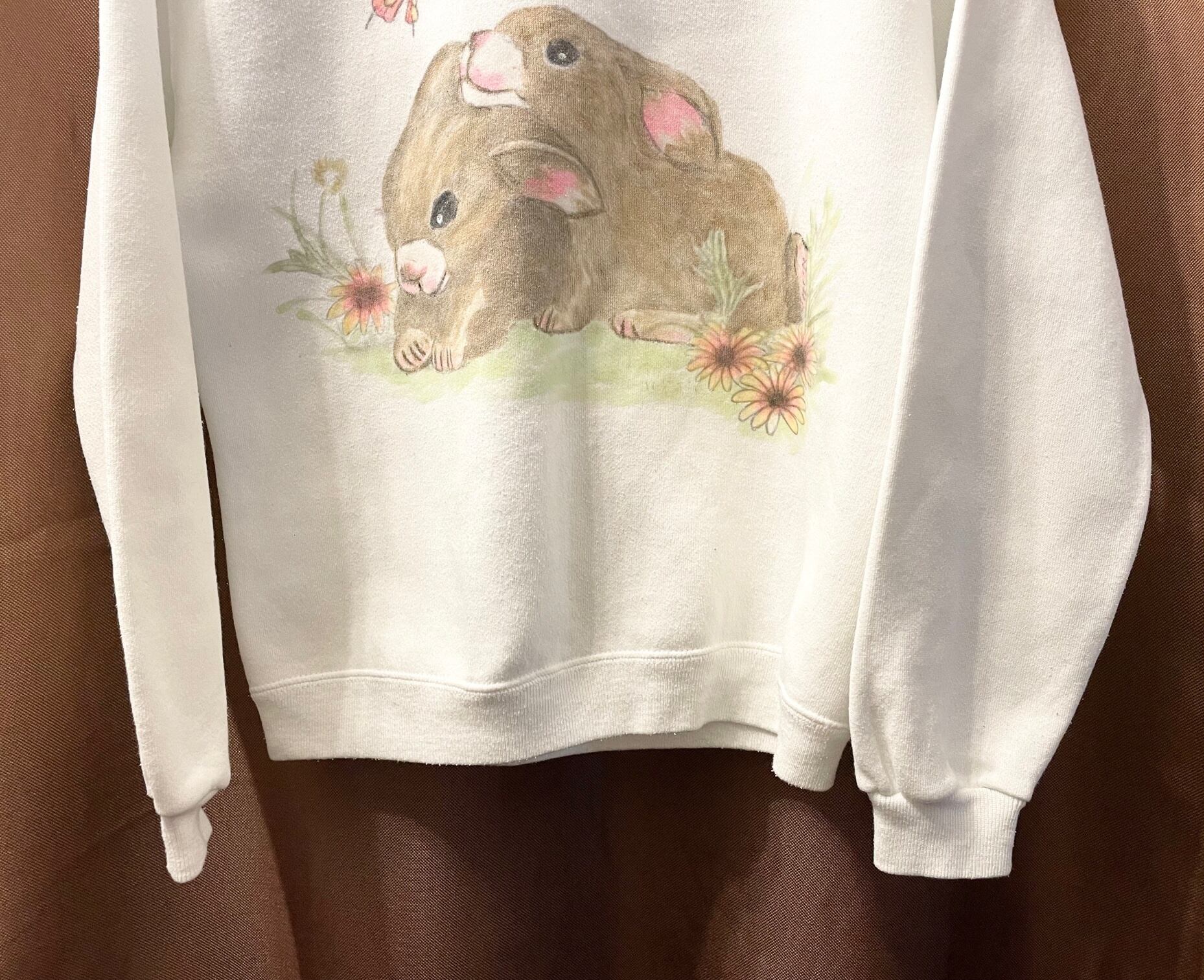 MADE IN USA製 CHEETAH BY MERVYNS うさぎラメプリントスウェットトレーナー ホワイト Mサイズ