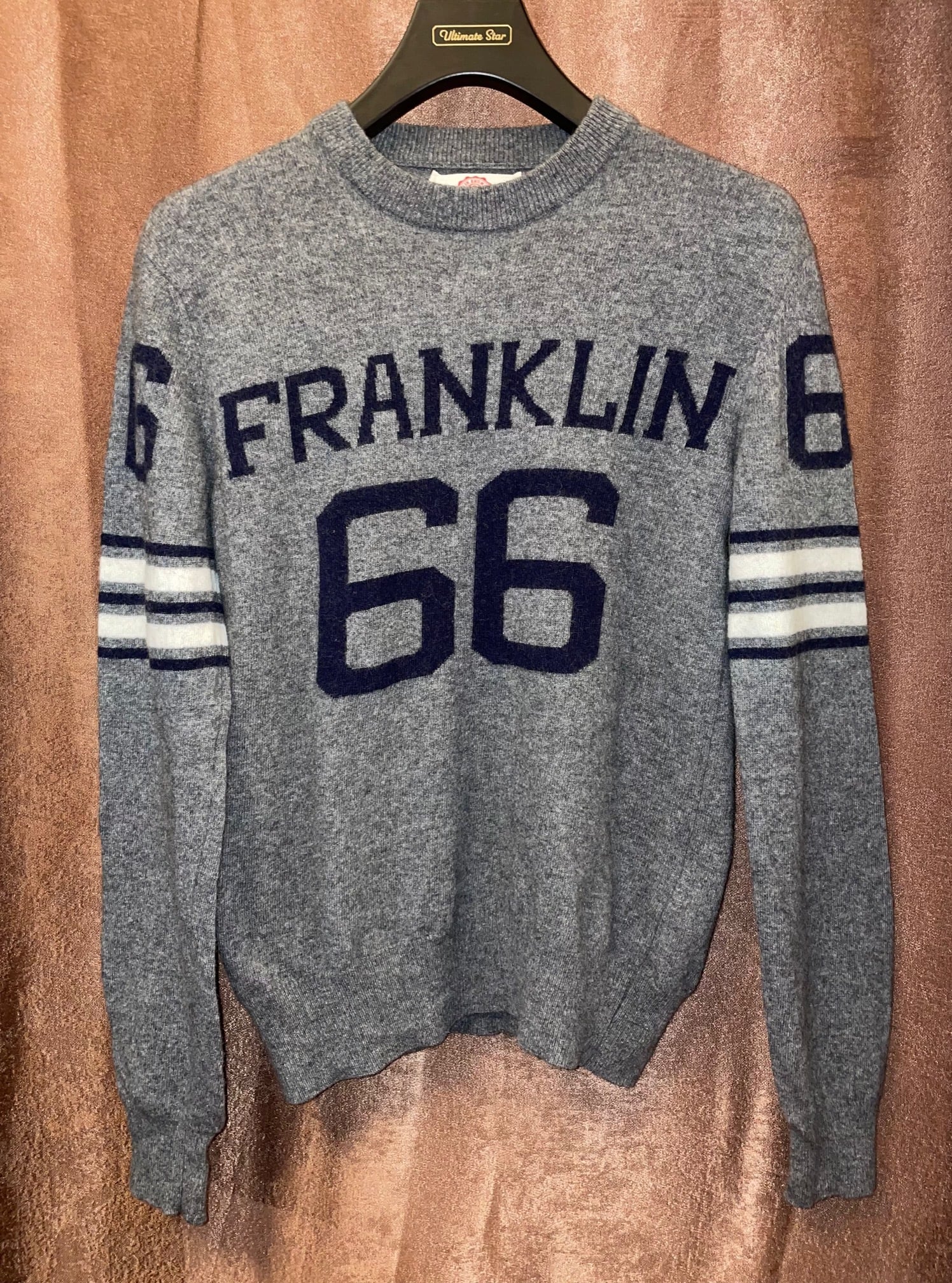 MADE IN ITALY製 FRANKLIN MARSHALL VARSITY ナンバリング クルーネックヴァージンウールセーター グレー XSサイズ