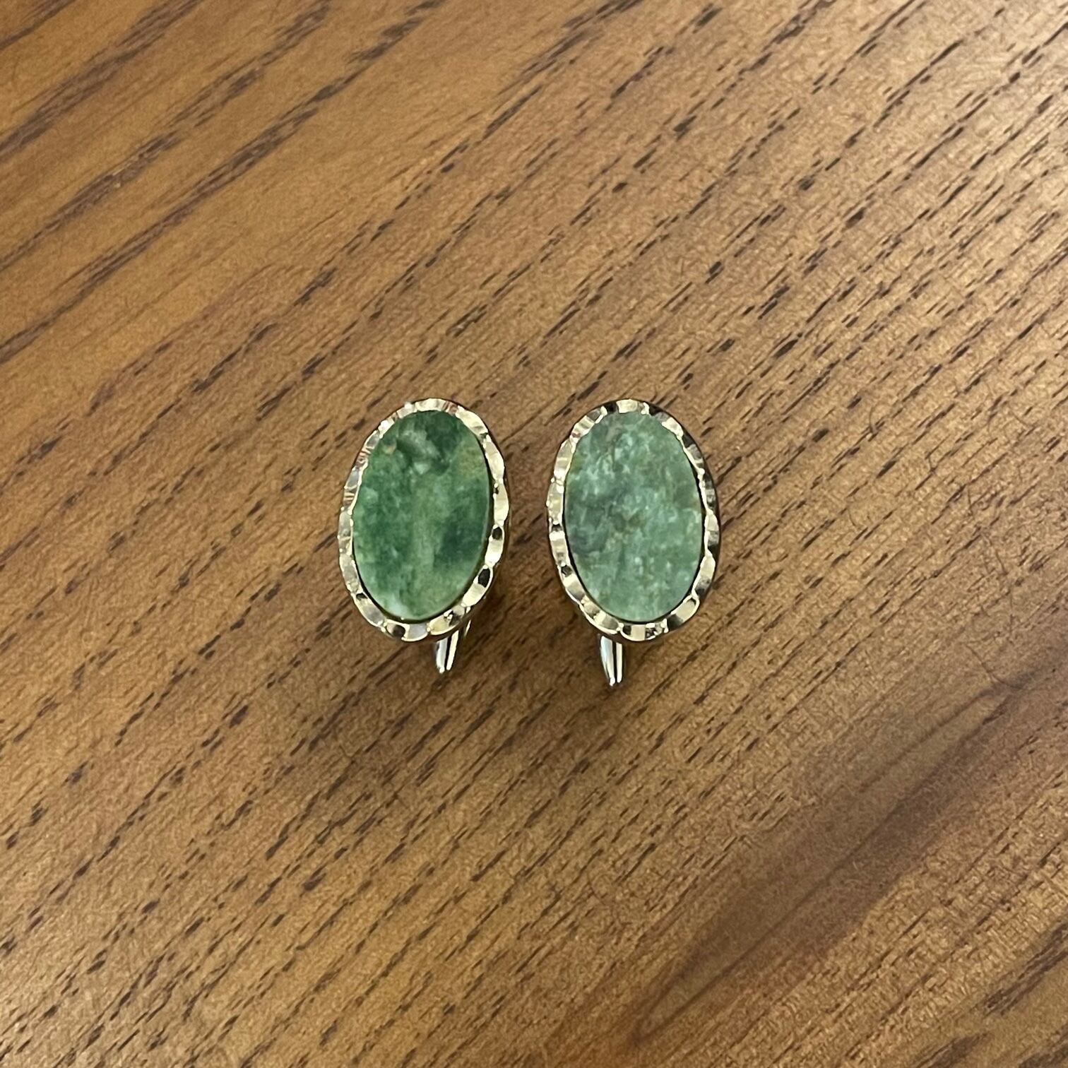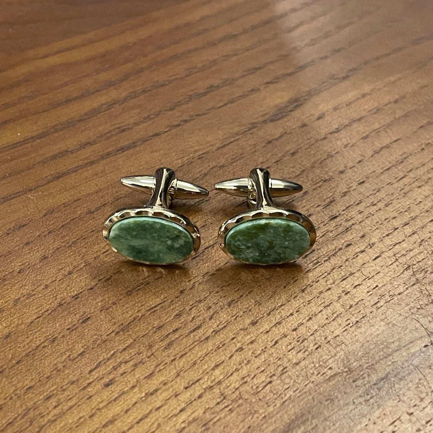 MADE IN ENGLAND製 ブローチ風カフリンクス グリーン×ゴールド