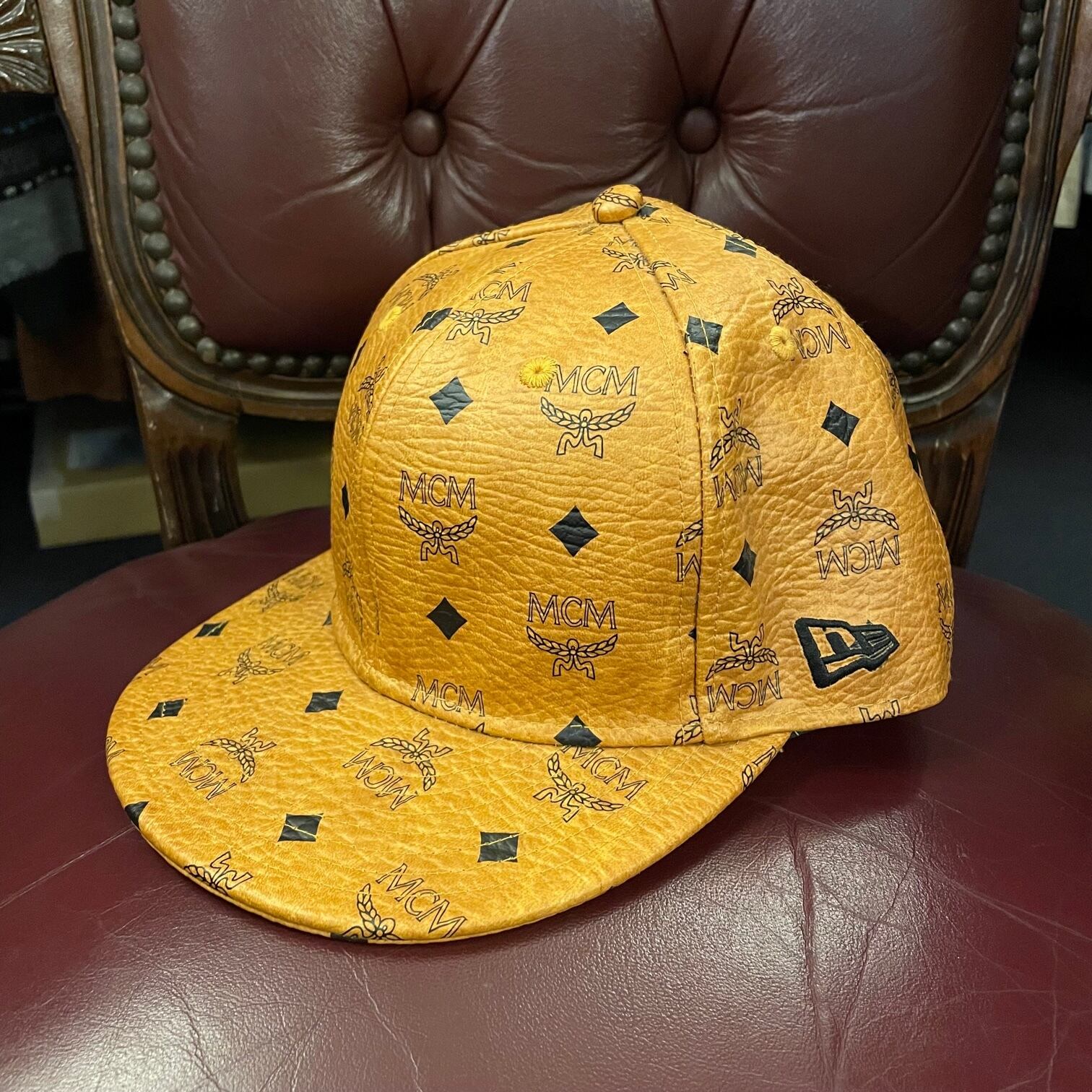 激レア TISA PHENOMENON × MCM トリプルネームモノグラム柄 NEW ERA ベースボールキャップキャップ コニャック 7-3/8サイズ