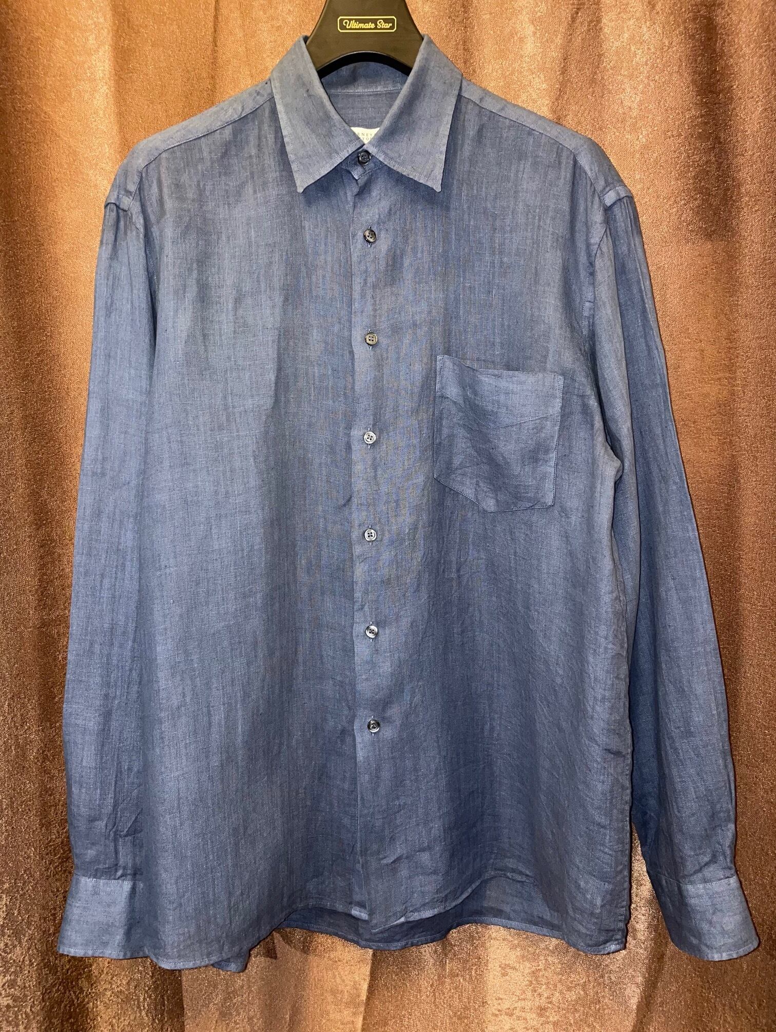 MADE IN ITALY製 BARNEYS NEWYORK 長袖リネンシャツ ブルーグレー Mサイズ