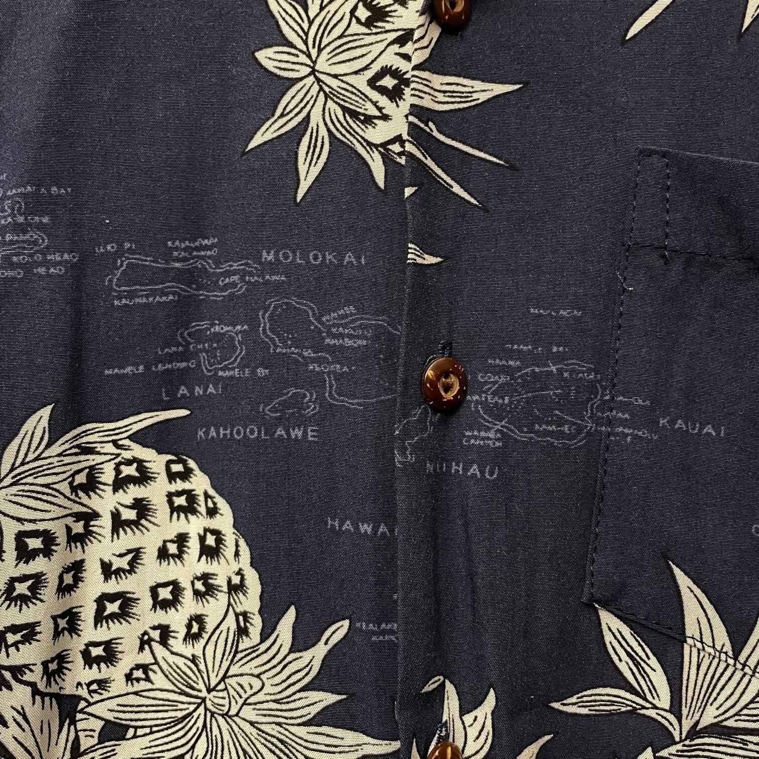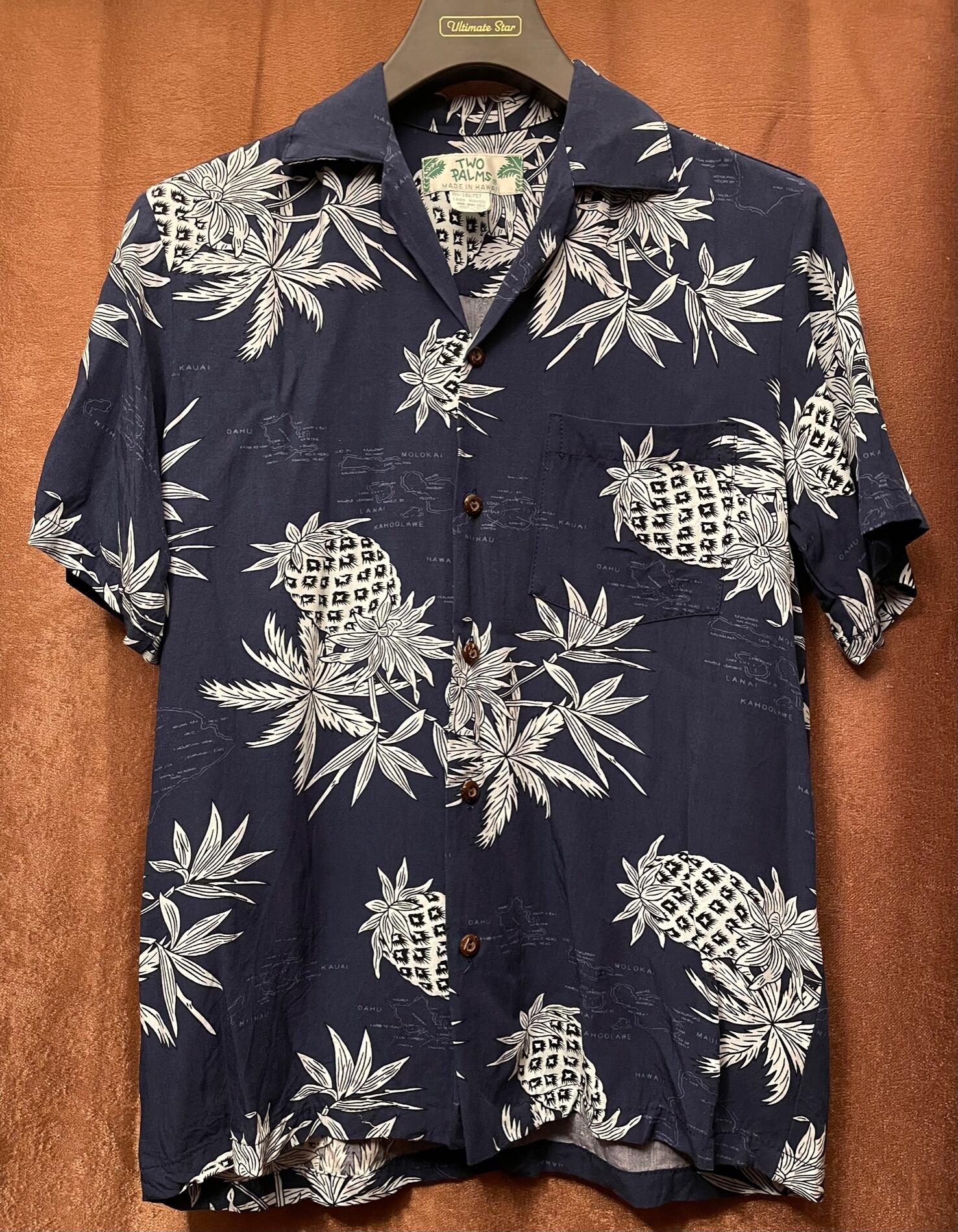 MADE IN HAWAII製 TWO PALMS アロハシャツ ネイビー XSサイズ