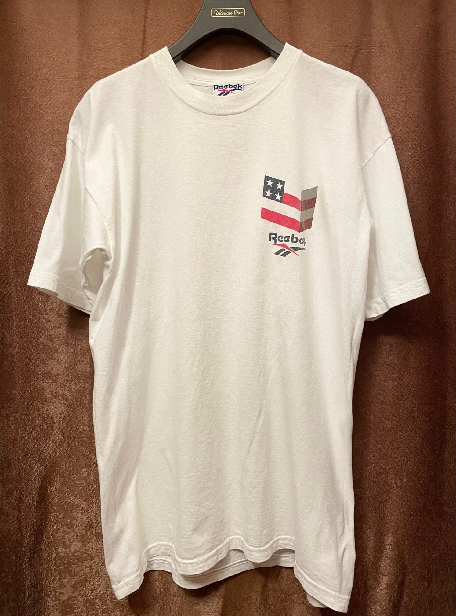 希少 MADE IN USA製 90s Reebok バックプリントロゴプリントTシャツ ホワイト Lサイズ