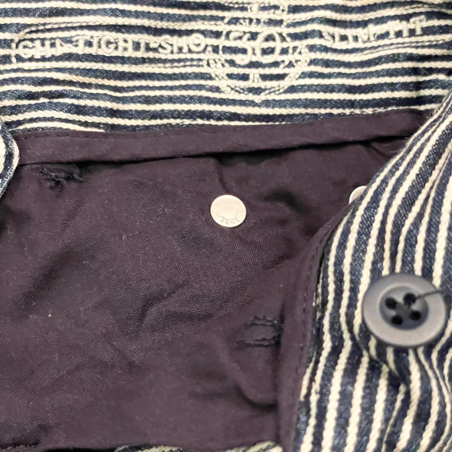 DIESEL ヒッコリーストライプ柄デニムハーフパンツ ネイビー×ホワイト W30サイズ