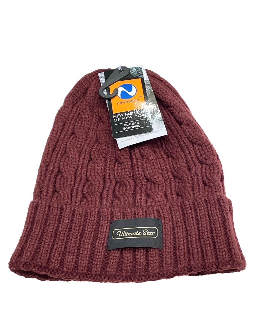 ★新品★ Ultimate Star オリジナルケーブル編みニット帽 バーガンディ Fサイズ