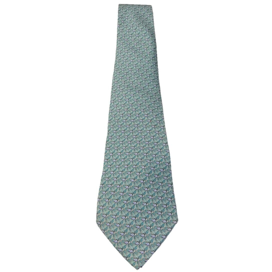 MADE IN ITALY製 Salvatore Ferragamo 蝶柄シルクネクタイ グリーン×パープル