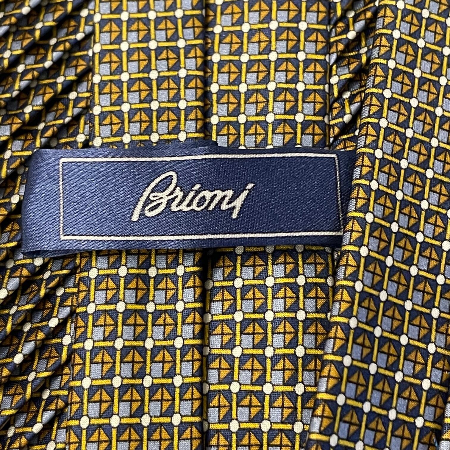 MADE IN ITALY製 Brioni HANDMADE 総柄プリントシルクプリーツネクタイ マルチカラー