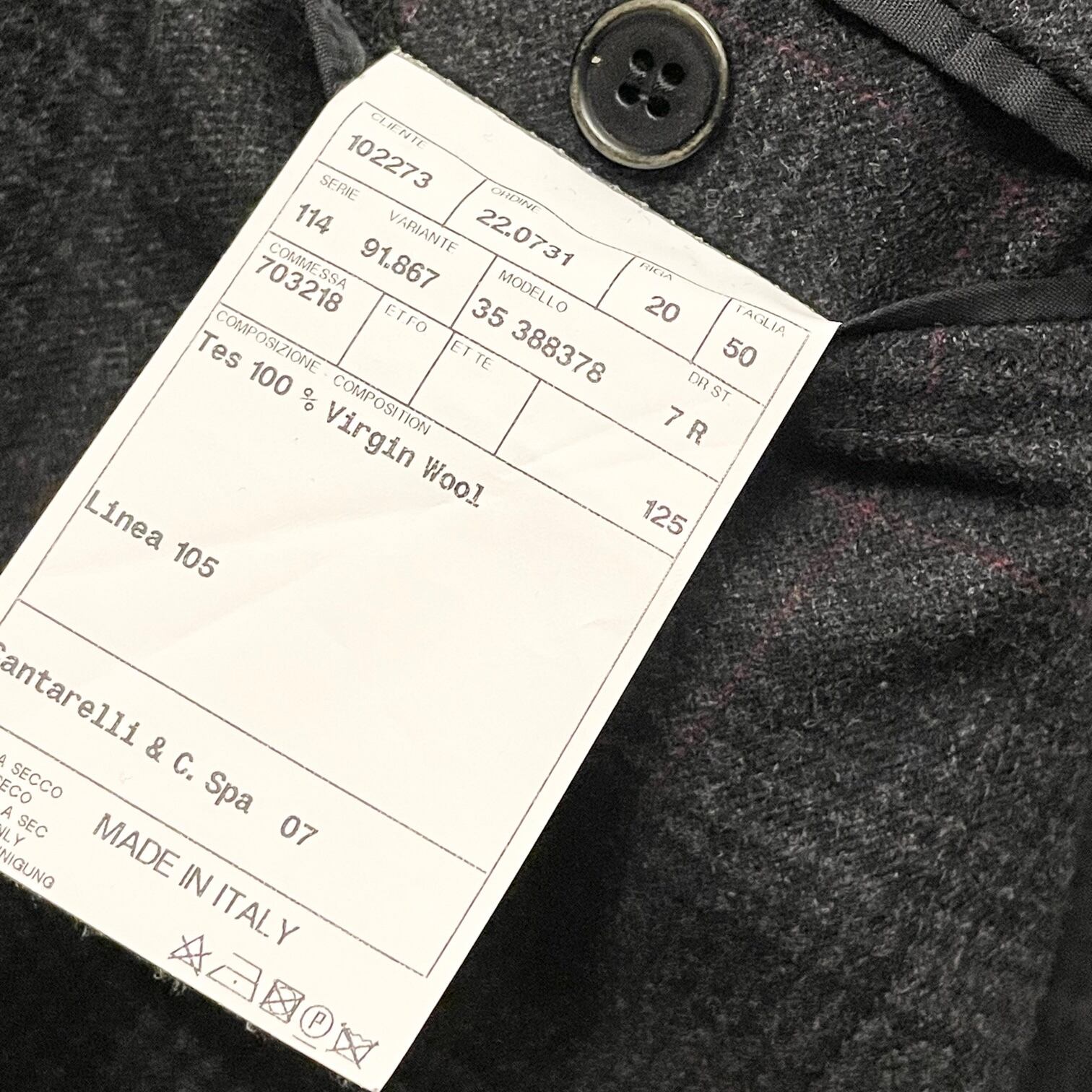MADE IN ITALY製 Cantarelli チェック柄ヴァージンウールテーラードジャケット チャコールグレー 50サイズ