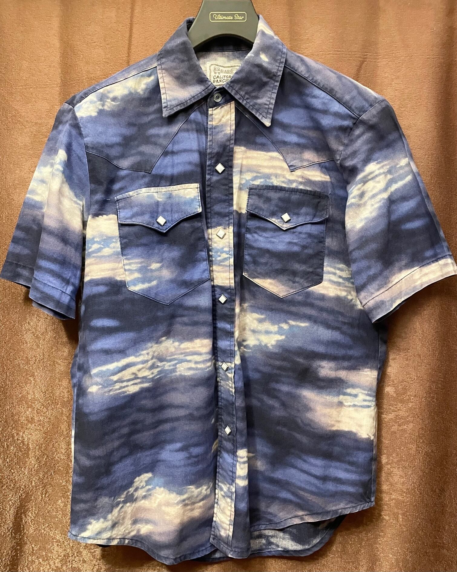 MADE IN USA製 H BAR C CALIFORNIA RANCHWEAR 半袖空柄ウエスタンシャツ ネイビー