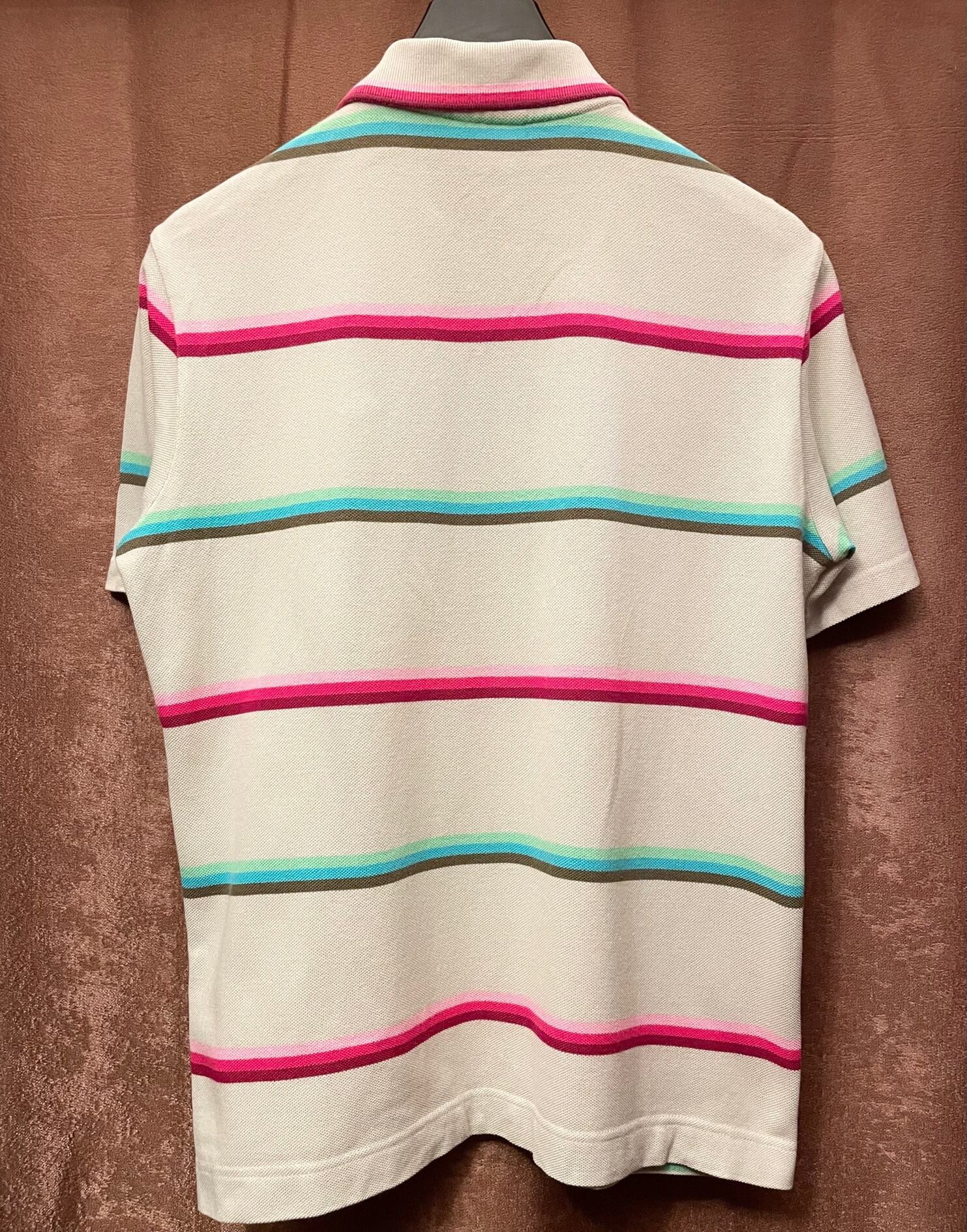 定番の鹿の子素材にカラフルなボーダー柄がオシャレなカラーリングになっており、左胸に定番のワニマークの入った使い勝手の良いおすすめの一品です。