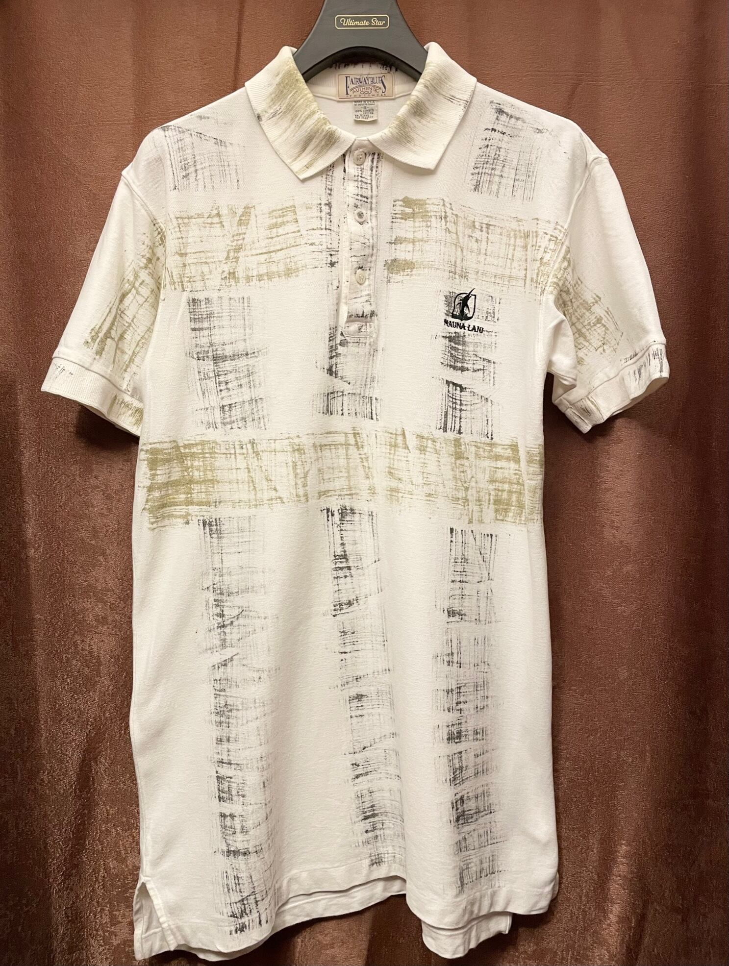 定番の鹿の子素材にかすれたような模様がプリントされたMADE IN USA製のアメリカ古着好きにおすすめの一品です。