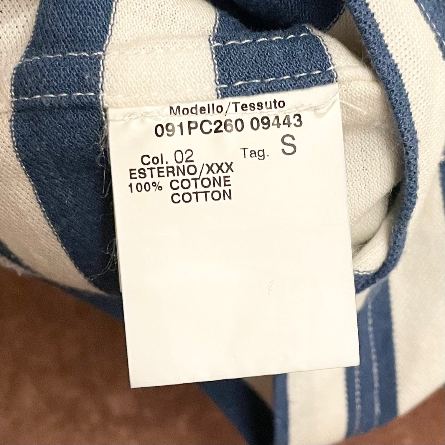 【BARNEYS NEWYORK 取り扱い】 MADE IN ITALY製 GUY ROVER ボーダー柄半袖ボタンダウン鹿の子ポロシャツ ホワイト×ブルー Sサイズ