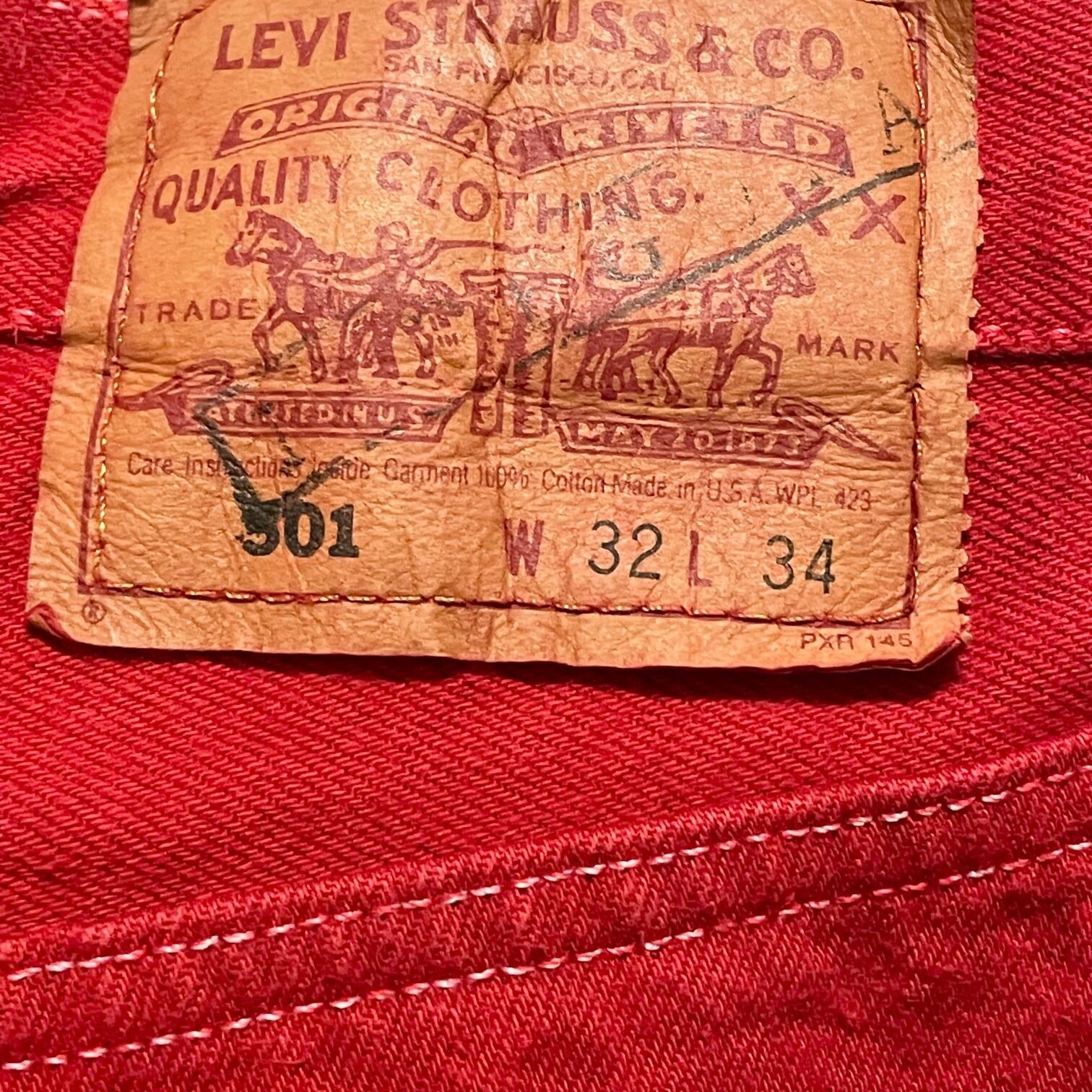 MADE IN USA製 LEVI'S 501 カラーデニムハーフパンツ レッド W32-L34サイズ