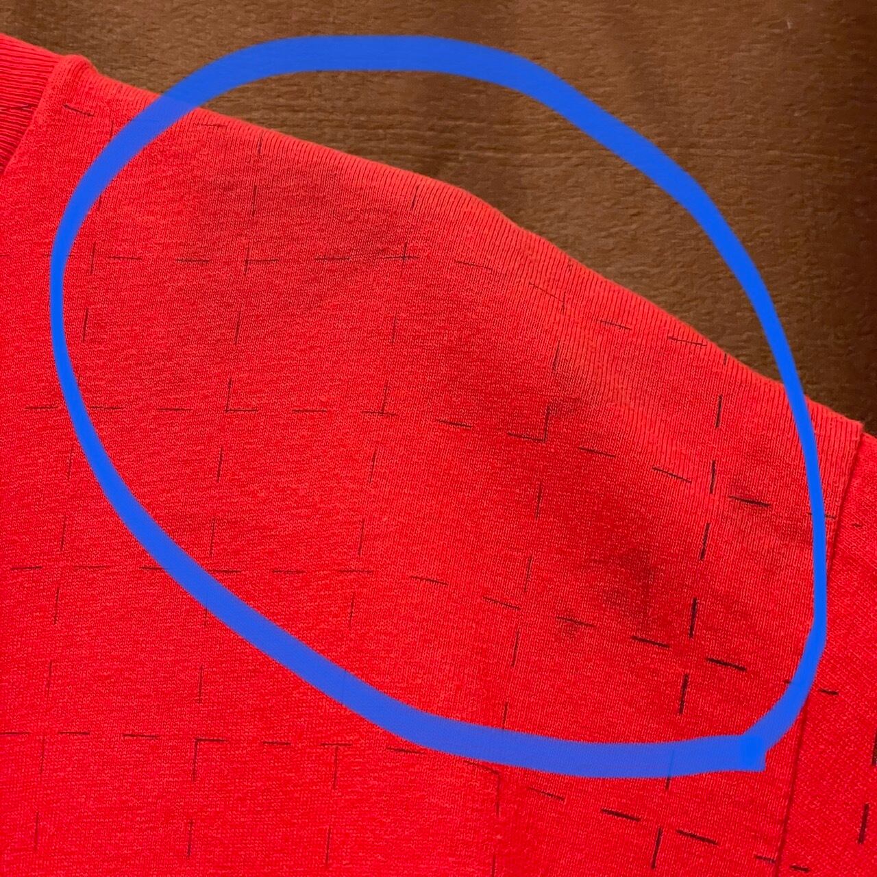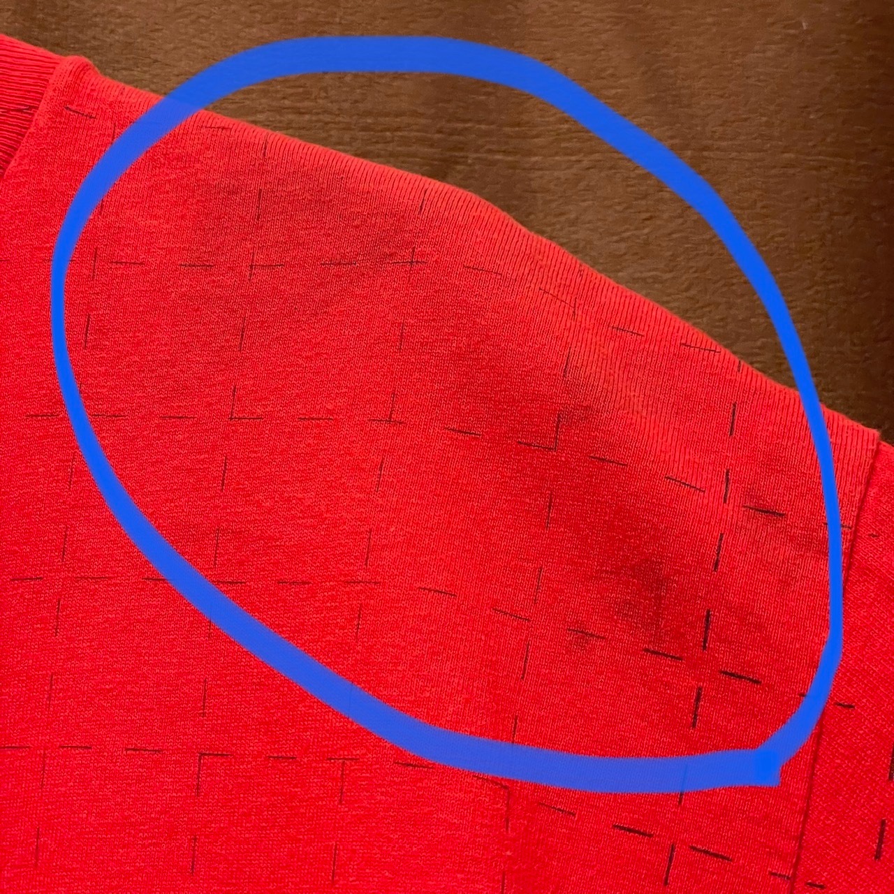 あまり目立ちませんが前両肩付近に黒い汚れのようなものがあるのでお求めやすい価格での販売となります。