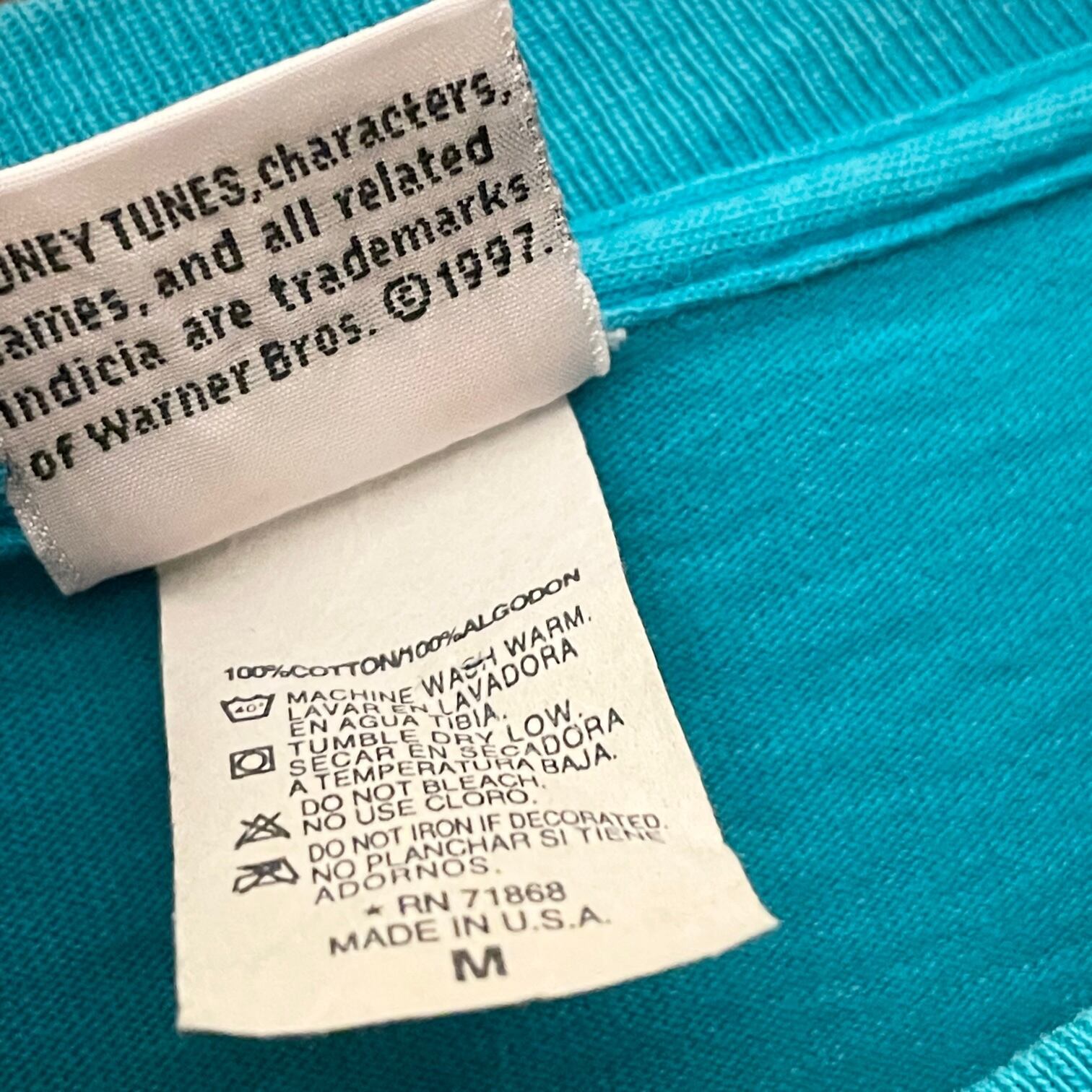 MADE IN USA製 90s LOONEY TUNES TWEETY プリントTシャツ ターコイズブルー Mサイズ