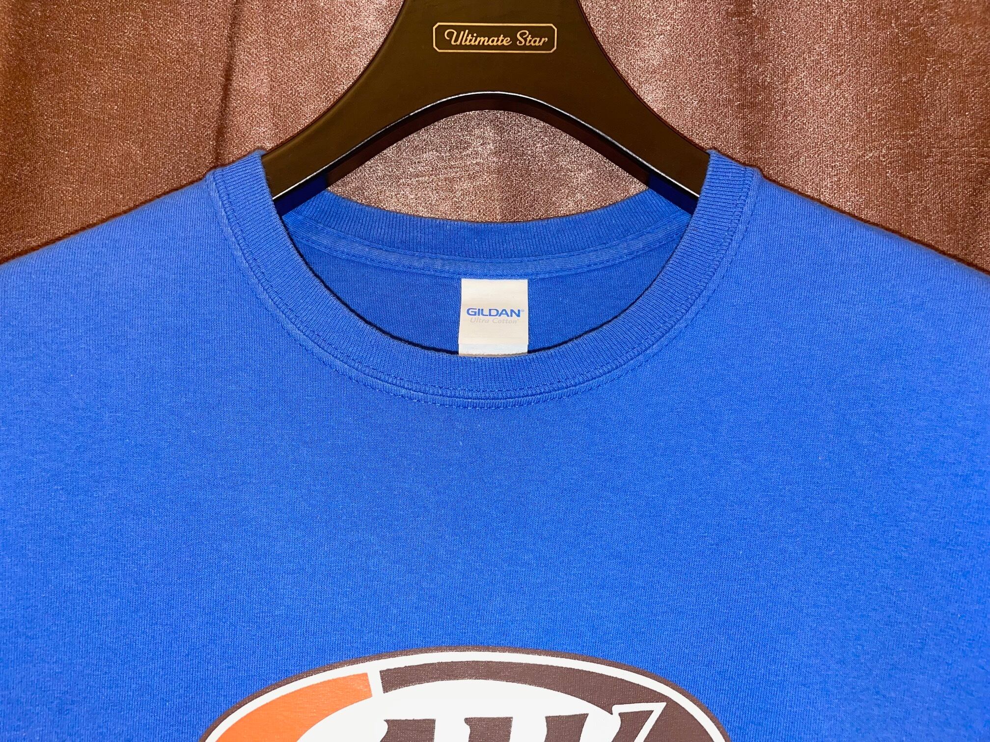 人気ボディメーカーのGILDAN(ギルダン)のUltra Cotton(ウルトラ・コットン)ボディを使ったブランドのロゴが前面にプリントされたシンプルなデザインで、アメリカ企業ロゴやブランドロゴ商品はアメリカ古着の中でも人気のあるので、古着やアメカジファッションが好きな方におすすめの一品です。
