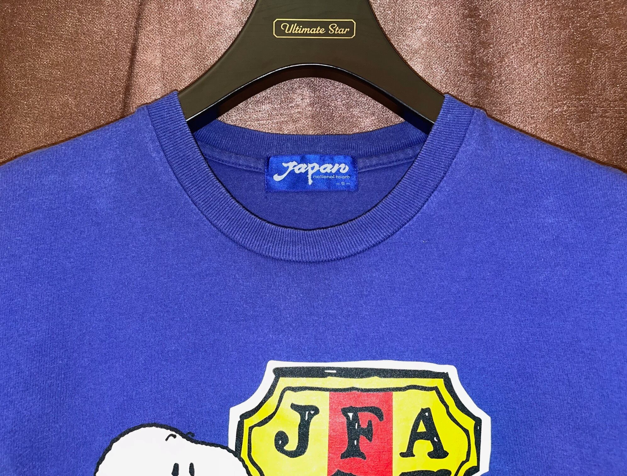 日本代表カラーのブルーのボディに日本サッカー協会のシンボルマークの八咫烏(ヤタガラス)マークとスヌーピーが並んだデザインに、JAPAN NATIONAL TEAM(日本代表)の文字が入ったデザインで、日本プロサッカーリーグのJ. LEAGUE(ジェイリーグ)の公式グッズを販売していたJ. LEAGUE ENTERPRISEのタグ付きになります。