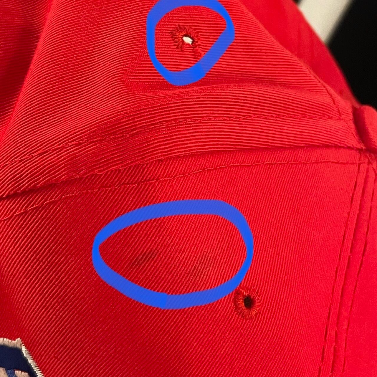 青丸部分に薄シミとほつれや汗止め部分に汚れなど見られますので年代品の中古品にご理解の上ご購入いただくようお願い致します。