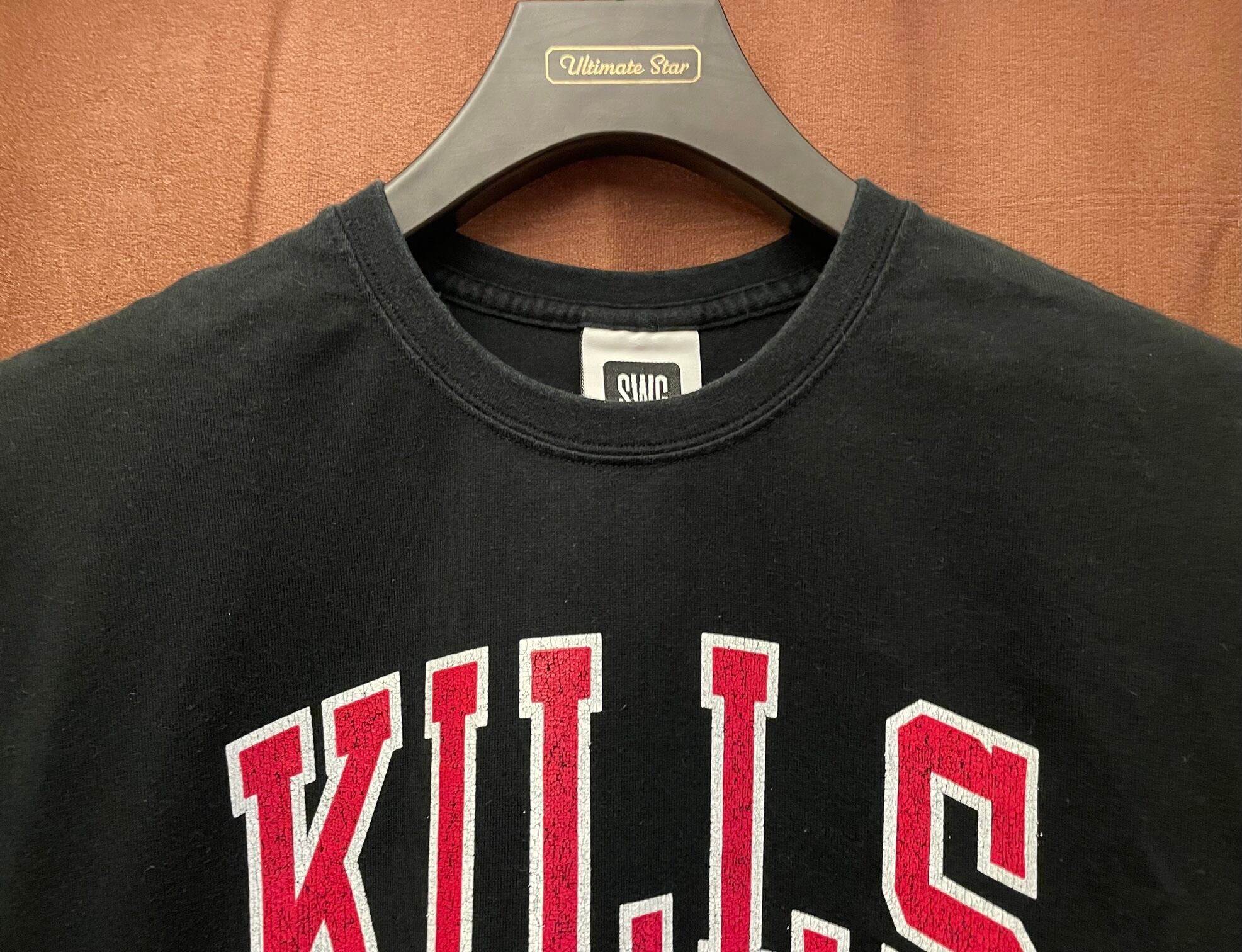 NBAのスーパースターでバスケットボールの神様と呼ばれるMichael Jordan(マイケル・ジョーダン)が所属していたことでもおなじみの人気NBAチーム、CHICAGO BULLS(シカゴ・ブルズ)をオマージュしたブルズカラーの「KILLS」の文字が入ったおすすめの一品です。