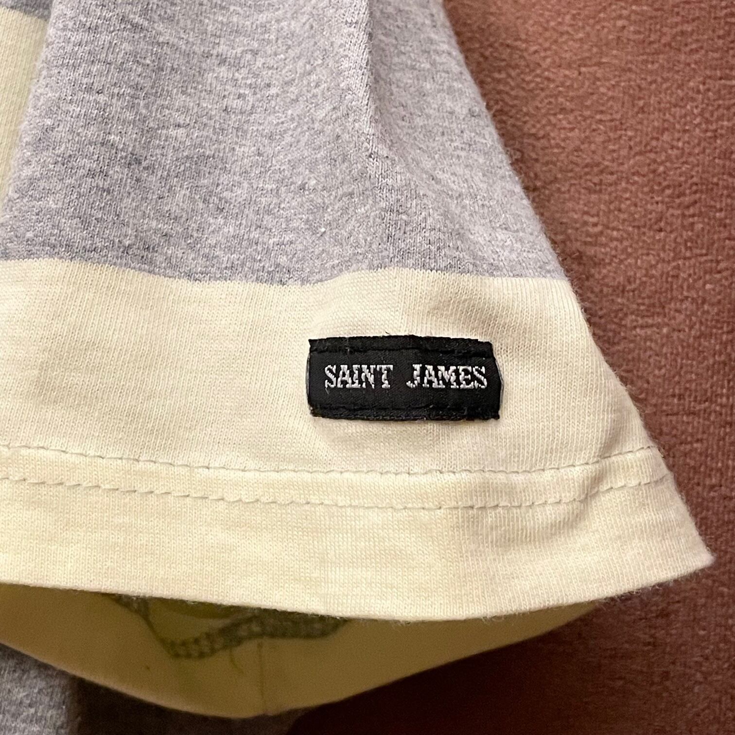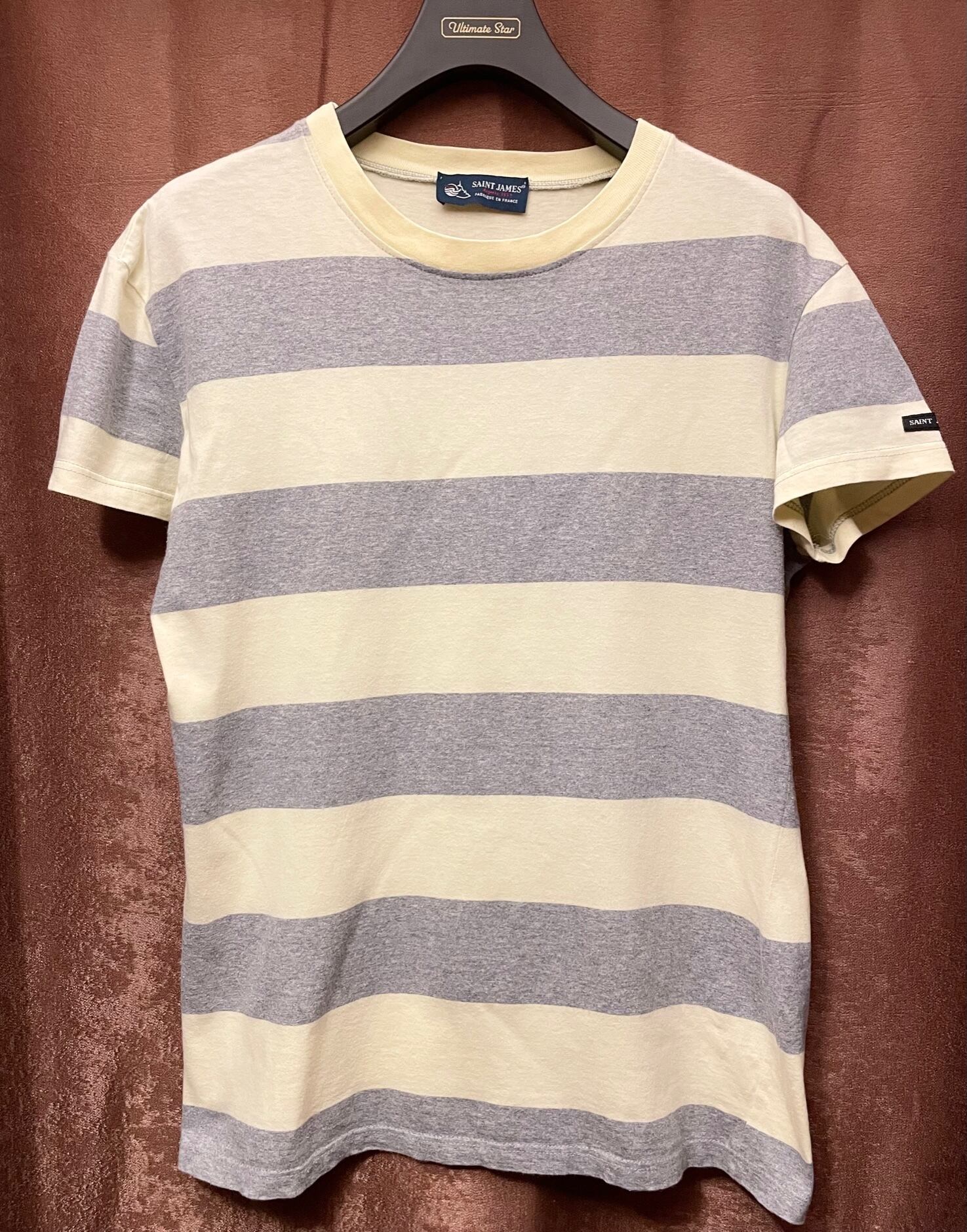 MADE IN FRANCE製 SAINT JAMES クルーネックボーダー柄Tシャツ ベビーイエロー×グレー MLサイズ