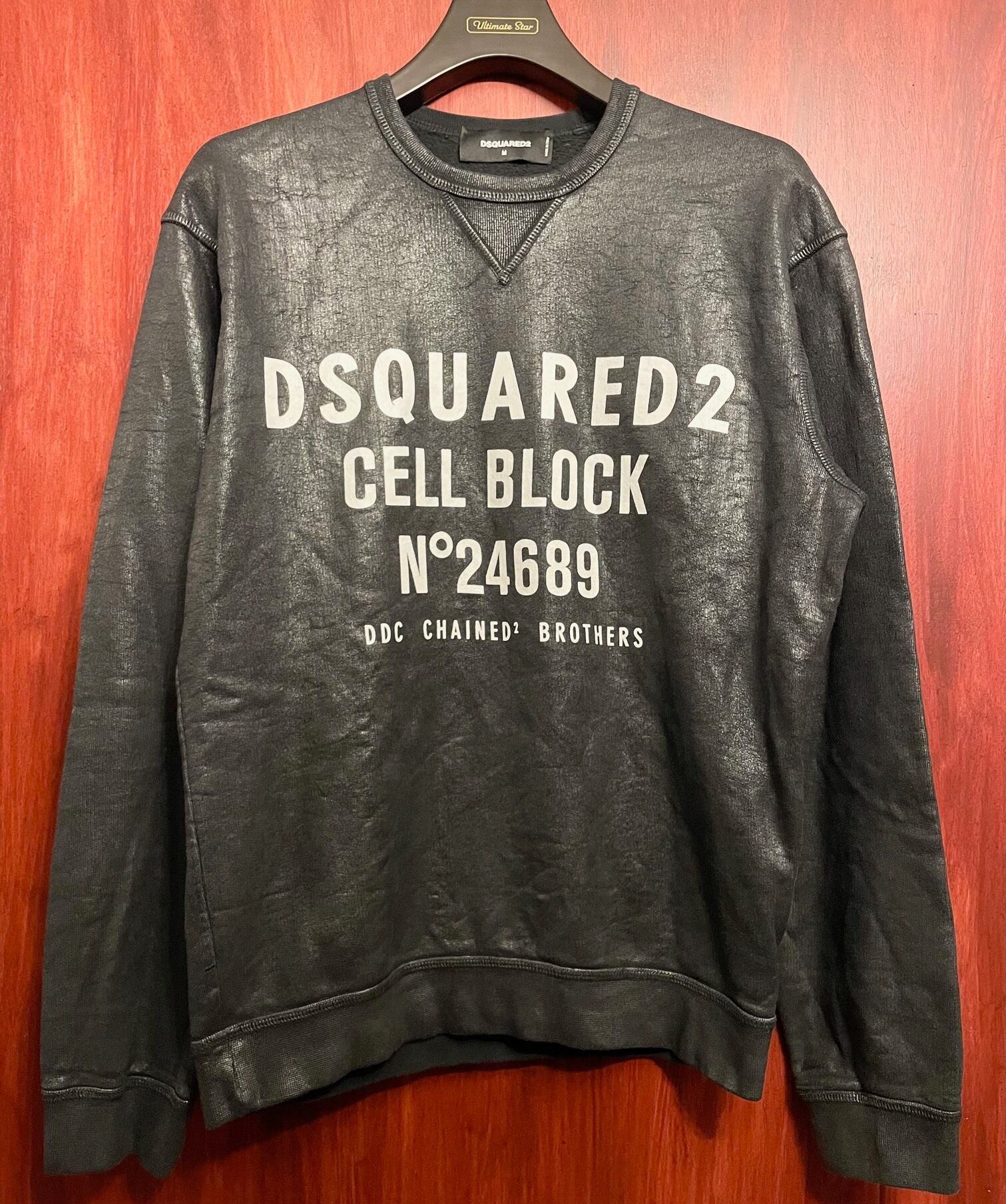 MADE IN ITALY製 DSQUARED2 2014年モデル レザー加工スウェットトレーナー ブラック Mサイズ