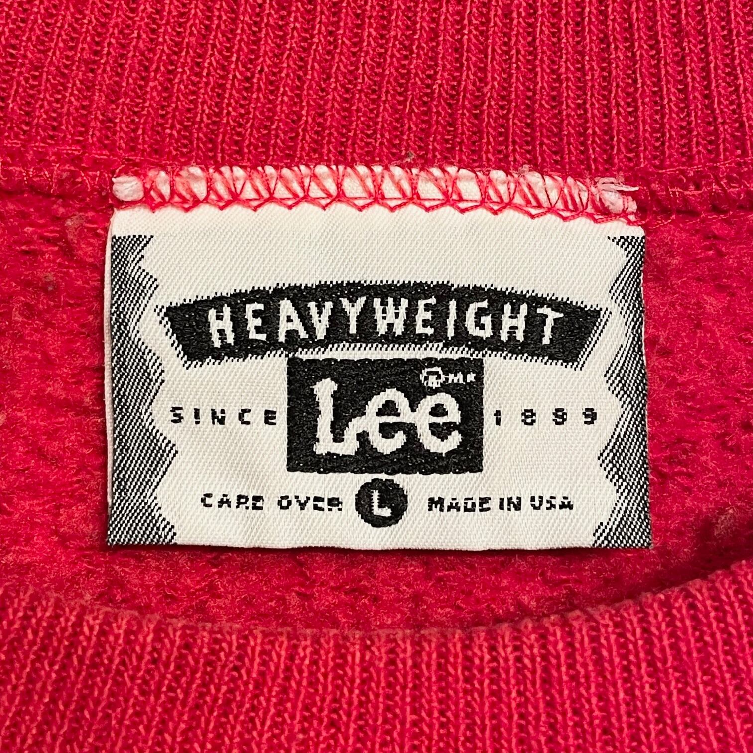 MADE IN USA製 90s LEE HEAVYWEIGHTボディ READ ACROSS OCONEE COUNTY プリントスウェットトレーナー レッド Lサイズ