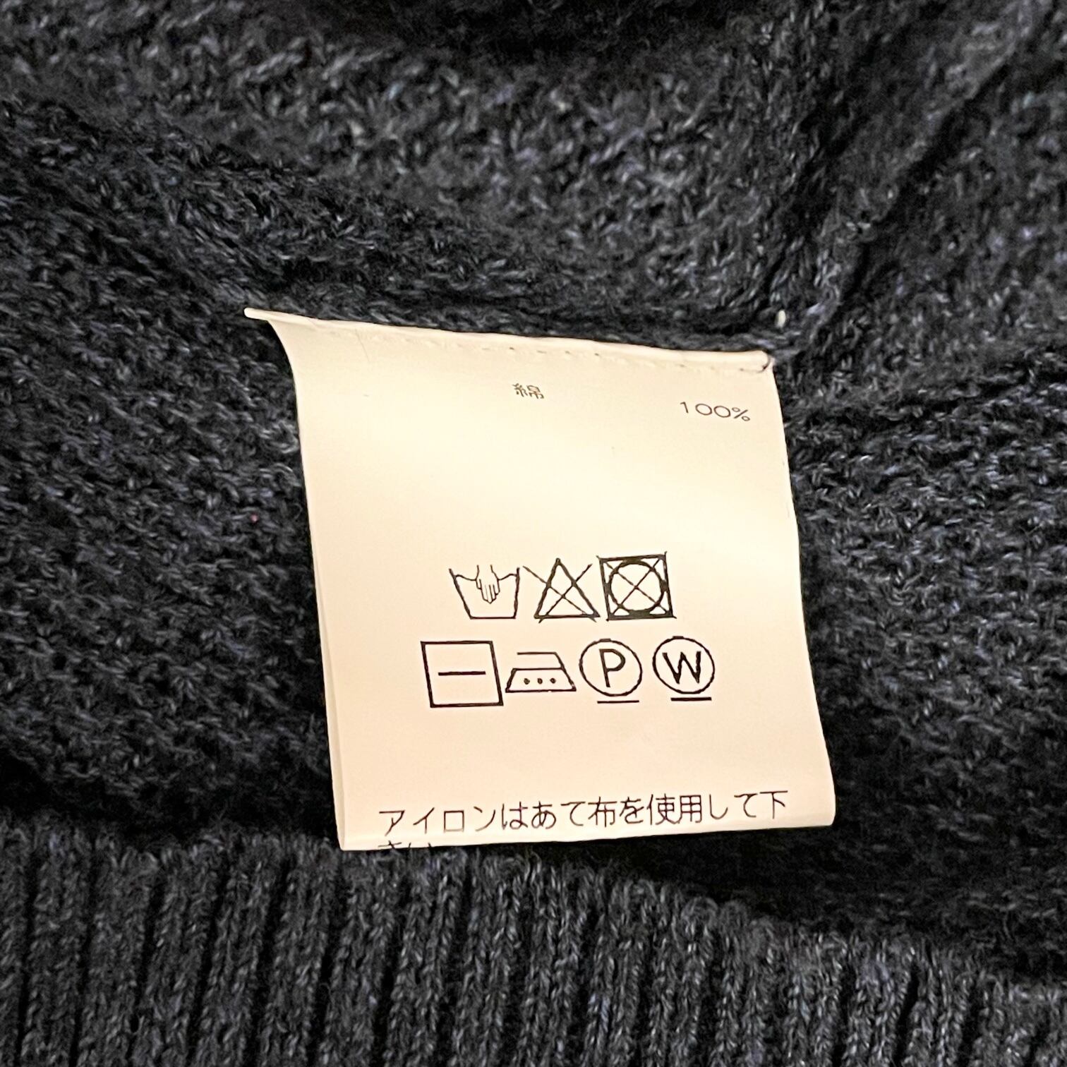 シンプルな編み込みデザインのコットン素材に、襟リブと袖リブ先のチャコールグレーの配色がアクセントになった、シンプルなデザインで1着あると重宝するおすすめの一品です。
