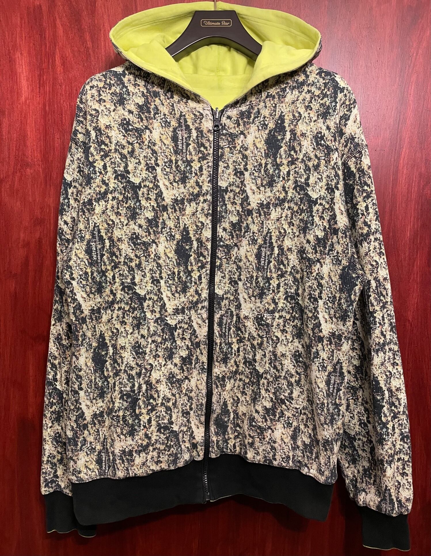 激レア NITRAID リアルウィード柄サーマル地リバーシブルフルジップパーカー マルチカラー×蛍光イエロー Lサイズ
