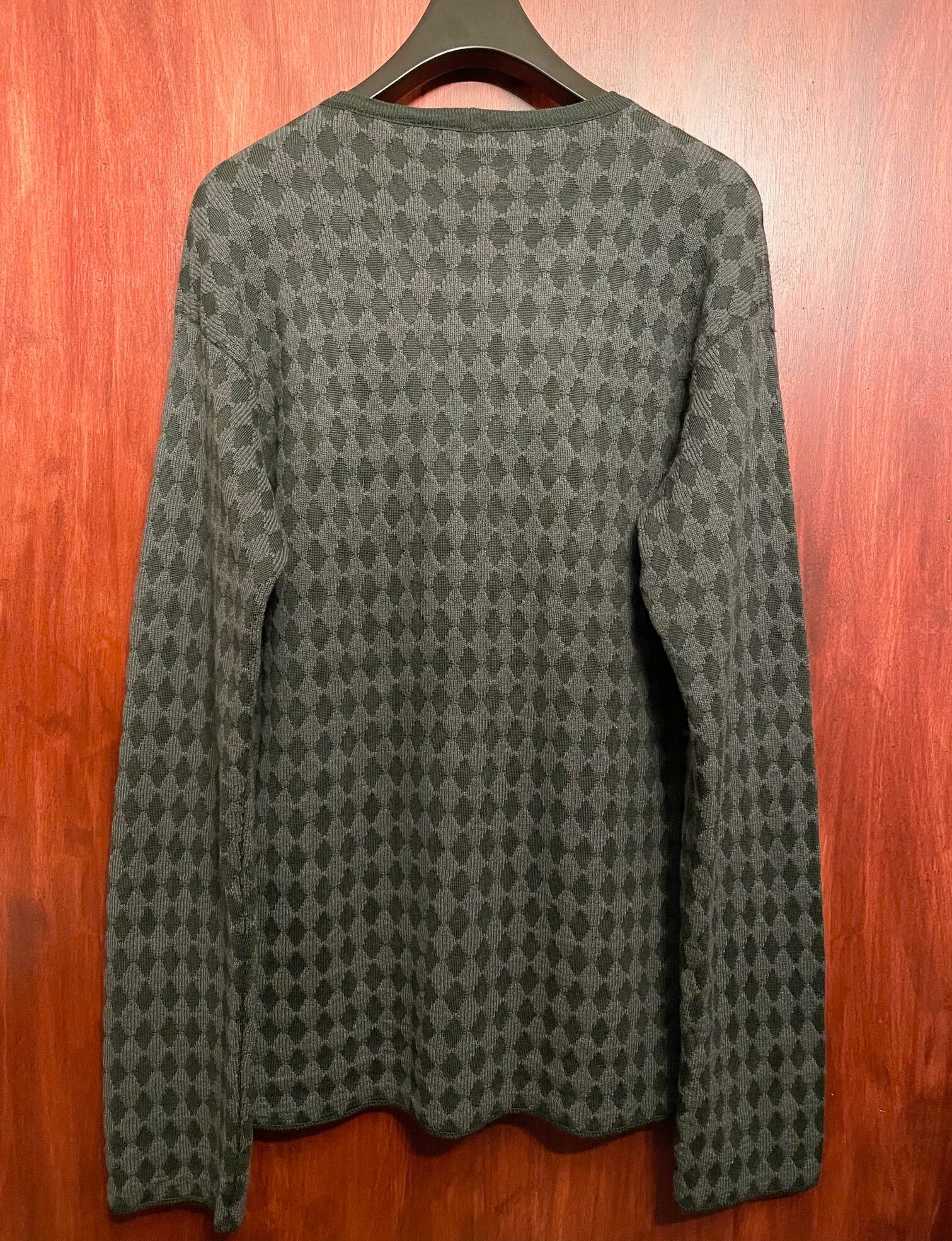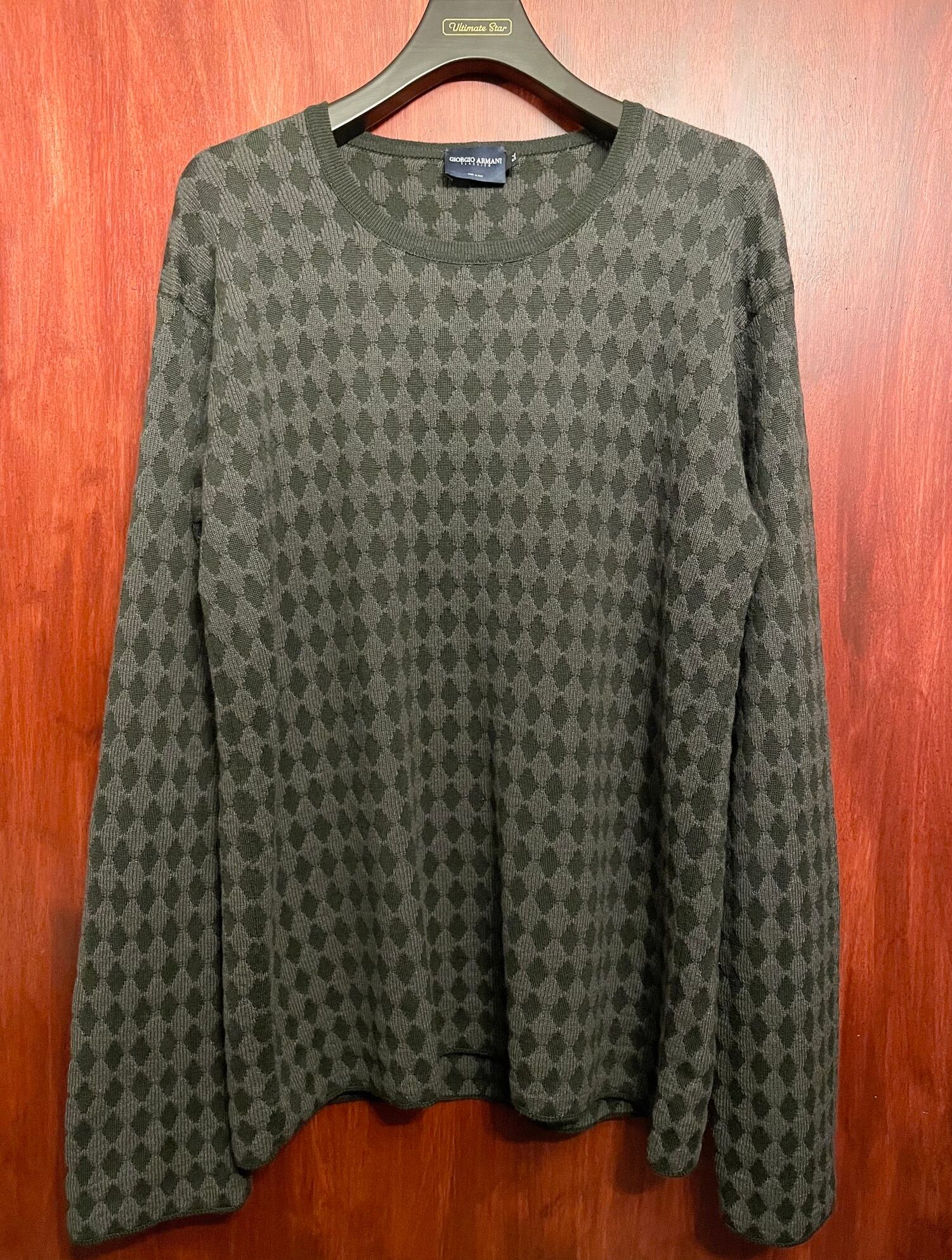 レア品 MADE IN ITALY製 90s GIORGIO ARMANI CLASSICO ダイヤ柄カシミヤウールシルククルーネックセーター チャコールグレー×ブラック 54サイズ