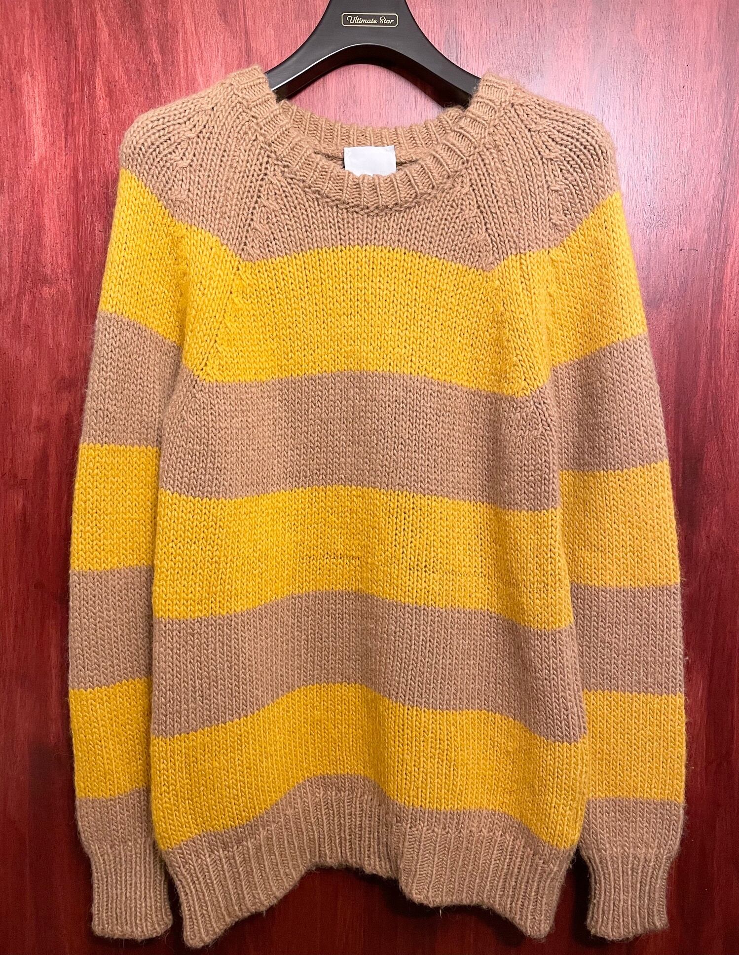 MADE IN ITALY製 PT TORINO ボーダー柄ウールアルパカクルーネックセーター ブラウン×イエロー 44サイズ